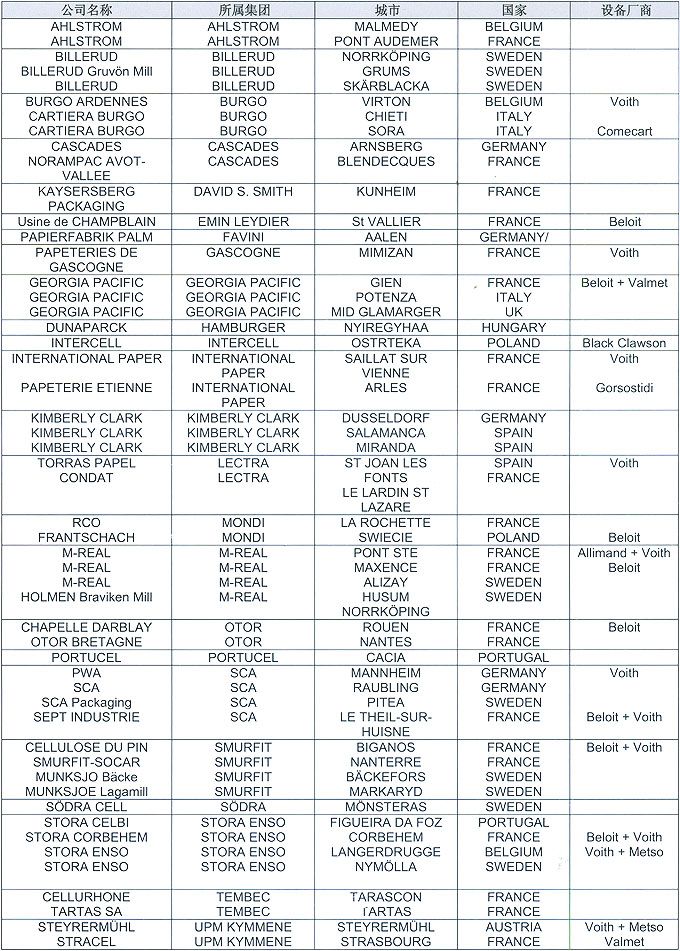 道達(dá)爾在歐洲造紙業(yè)的主要客戶