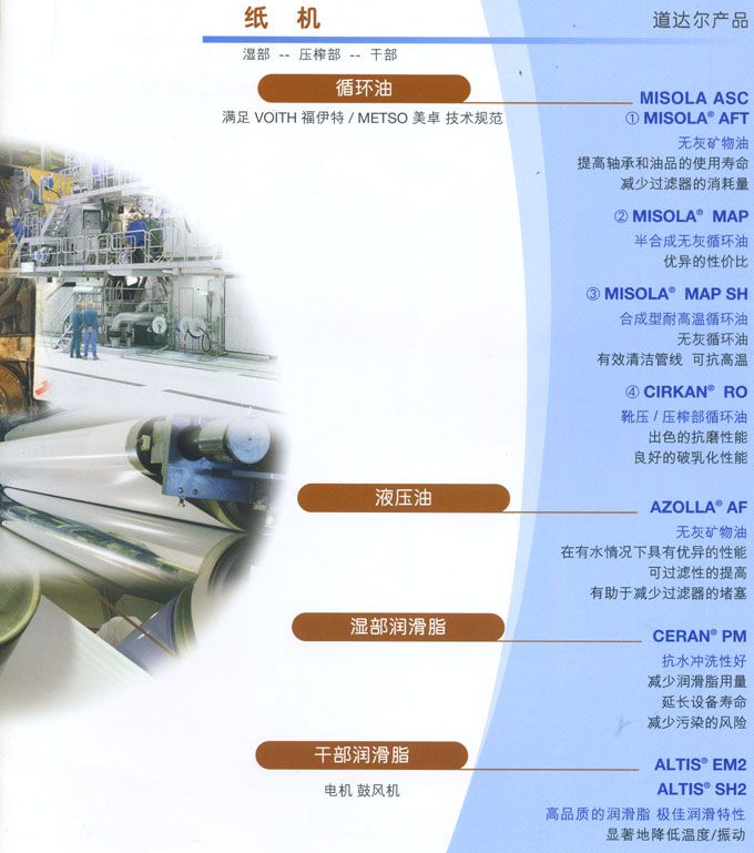 造紙工業(yè)潤滑油/脂